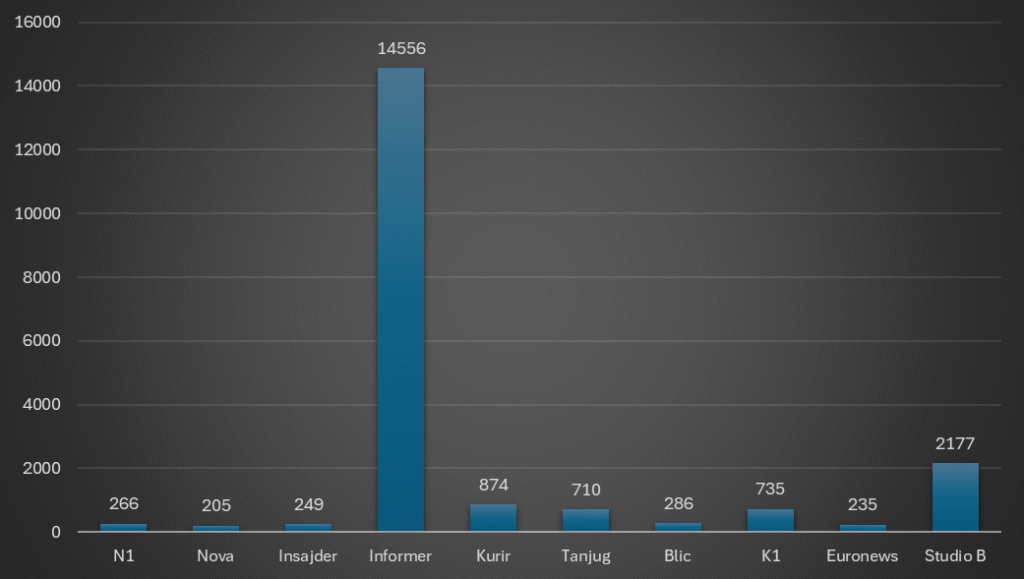 Posmatrajući izveštavanje kablovskih televizija u istom periodu, reči koje u osnovi imaju “blokader” najviše puta su izrečene na TV Informer.