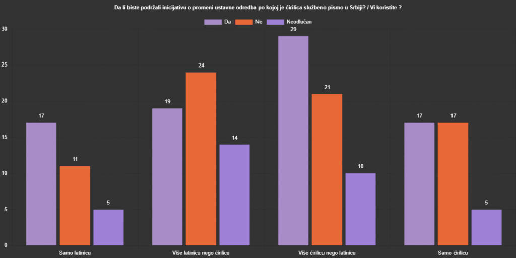 Stav o ustavnom položaju ćirilice kao pisma nije povezan sa pismom kojim ispitanik piše?